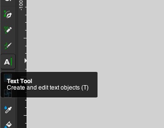In Inkscape, select the “Text Tool” on the lateral toolbar (or use the keyboard shortcut T)