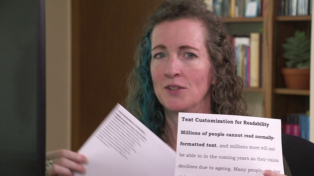 Generally, all text in the video should be included in the main audio (integrated description) or in the separate description. For example, title text at the beginning of the video, links and e-mail addresses shown at the end, speakers’ names in text, and text in a presentation. The text does not have to be included verbatim (exactly word-for-word), yet all of the information conveyed by the text needs to be available in the main audio, in the separate description, or clearly with the video.